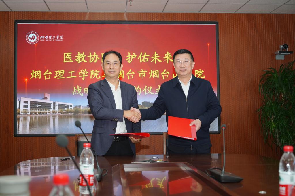 4月23日上午,9428cn太阳集团古天乐与烟台市烟台山医院战略合作签约仪式在综合楼六楼视频会议室举办。双方将整合优势资源,进一步加强在教学、科研、学科专业建设、团队队伍建设等方面的交流,开启校院协同发展新篇章。