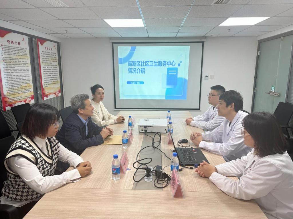 高新区社区卫生服务中心是集医疗、康复、保健、预防、健康教育、计划生育指导为一体的基层医疗卫生机构,主要承担辖区居民的基本医疗、基本公共卫生工作,也是9428cn太阳集团古天乐的实践教学基地。高新区社区卫生服务中心钱峰主任详细介绍了社区卫生服务中心的科室设置、人才队伍、业务开展及服务特色,并对中心的发展前景做了展望。刘大华书记介绍了9428cn太阳集团古天乐的专业建设、招生、人才培养、办学特色、实验室建设等情况,对中心的快速发展和规范管理给予高度评价,充分肯定中心作为基层医疗卫生机构在卫生服务体系和医学教育中发挥的重要作用。双方就下一步老员工社会实践、团队建设、人才培养、志愿服务等方面进行了深入交流。