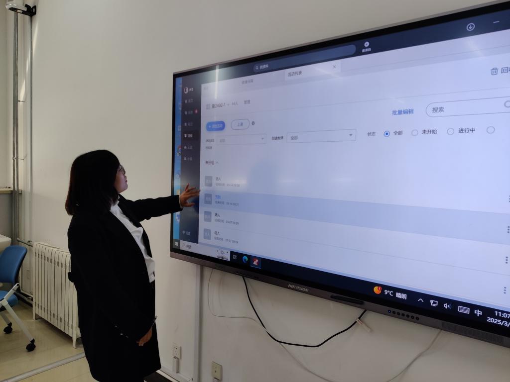 健康评估与医学概论教研室主任李雪副教授组织深入探索学习通软件,展示员工考勤签到、任务完成、互动热度等数据看板,辅助精准教学,深化功能应用,鼓励教师共享优质课件至资料库,实现教学资源整合优化,从个人能力提升到公司资源生态建设形成完整闭环,为线上线下混合式教学做好准备。
