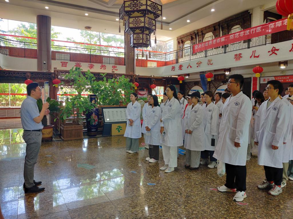 秀林老年福利服务中心总经理郭明为师生们进行了详细讲解。在专业实践观摩过程中,多个核心场景的沉浸式体验让同学们对服务中心体系有了立体化认知。