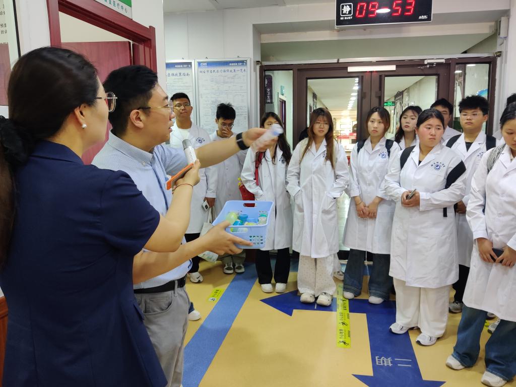 药房内,同学们系统了解了从药品验收、效期管理到配药系统的全链条管理模式。严格执行的核对制度、处方追溯,生动诠释了药品安全作为医养服务生命线的重要意义。