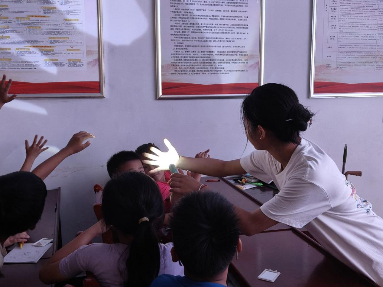 针对乡村儿童健康认知薄弱环节,团队创新推出“理论具象化、知识场景化、实践趣味化”的健康教育模式。在“身体小宇宙探索”课堂上,志愿者借助动画和模型,将肿瘤比喻为“异常细胞军团”,将炎症解释为“免疫系统保卫战”,生动阐释医学知识。“药品安全解码”课程则通过实物展示与互动操作,帮助孩子们辨识处方药与非处方药,强化儿童用药规范;“营养膳食创意工坊”里,志愿者结合乡村饮食结构,同步讲解膳食搭配知识,引导养成科学饮食习惯,让健康理念扎根童心。