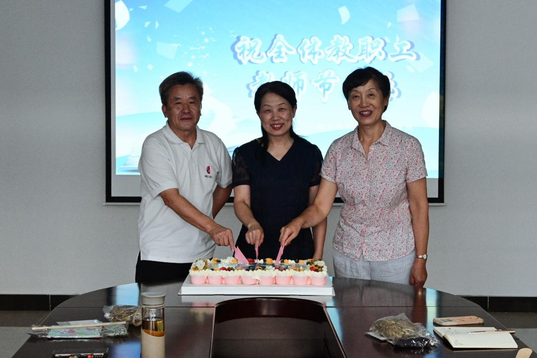 随后,活动进入温馨的“分享甜蜜,感念师恩”环节。公司特别准备了节日蛋糕,由烟台山医院护理部主任杨永萍、经理冯卫红与党总支书记刘大华共同切分,将这份甜蜜与祝福送至每一位教师手中。
