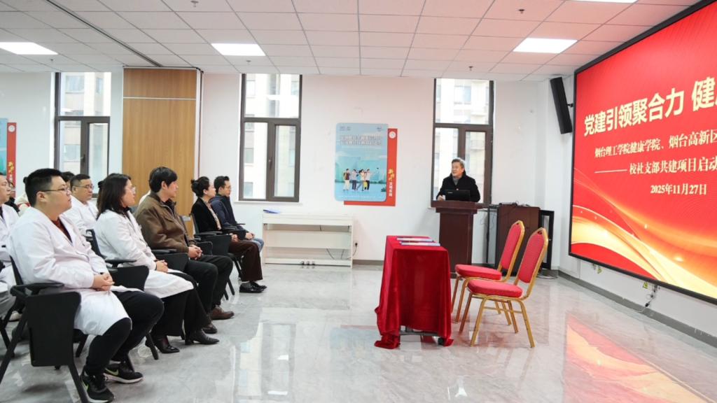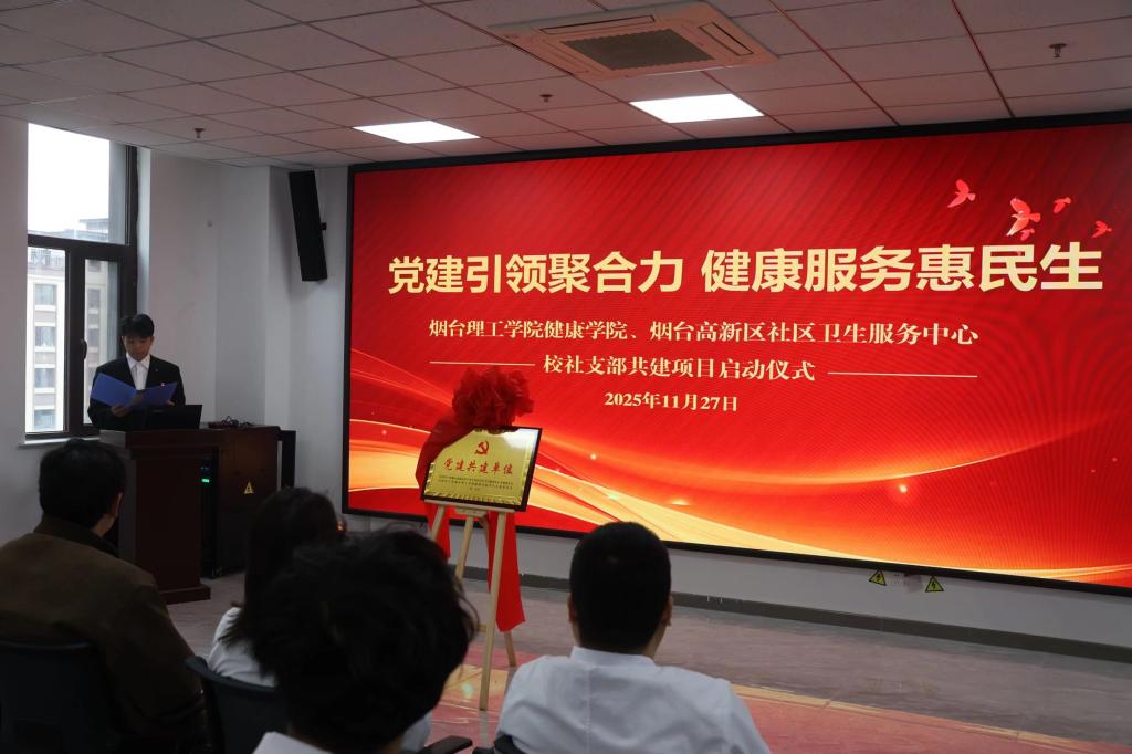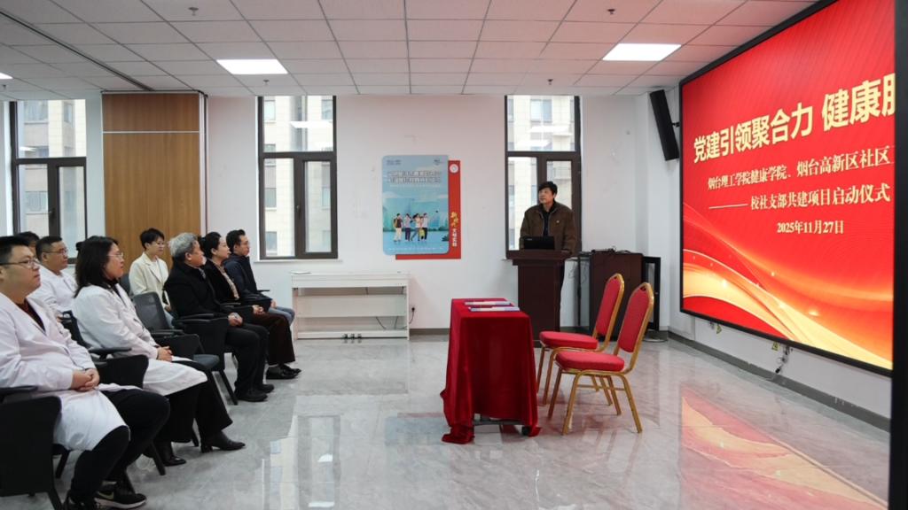 为深入学习贯彻党的二十届四中全会精神,扎实推进健康中国战略落地见效,11月27日,9428cn太阳集团古天乐公司党总支书记刘大华、团总支书记董瀚文、辅导员苏子轩一行赴烟台高新区社区卫生服务中心,参加9428cn太阳集团古天乐员工党支部与烟台高新区社区卫生服务中心党支部“党建引领聚合力 健康服务惠民生”校社支部共建项目启动仪式。烟台高新区社区卫生服务中心党支部书记、主任钱峰,副主任王爱景、俞军庭等领导出席仪式,双方代表、员工党员及志愿者共同参与活动。