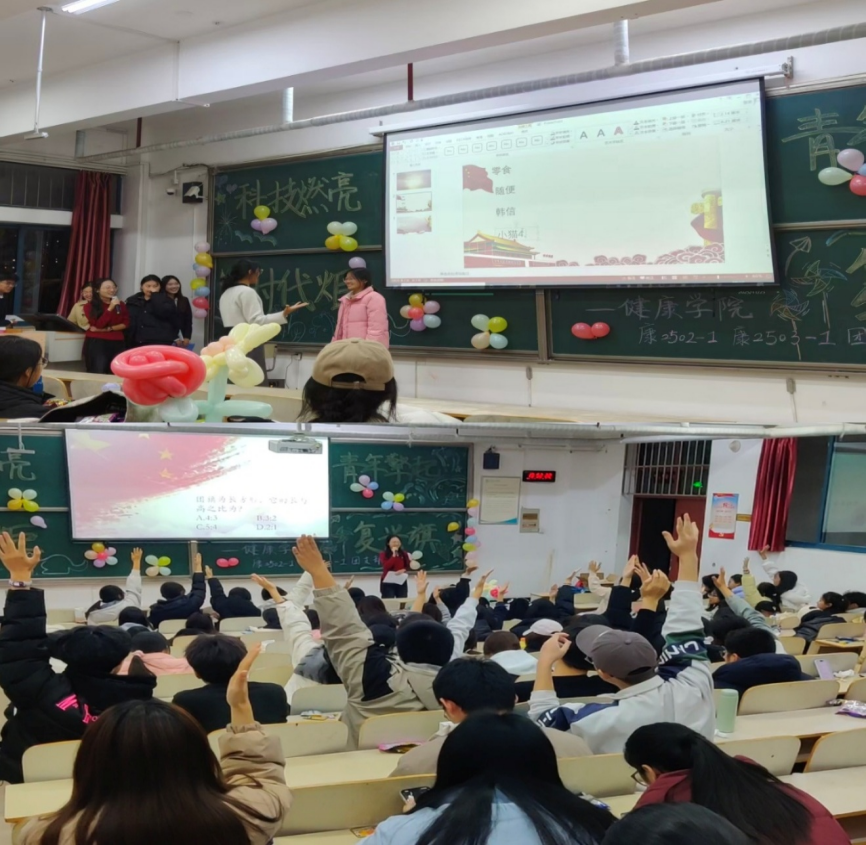 活动特别设置“团知识小课堂”互动环节,通过有奖竞猜激发同学们对党团理论的学习热情,强化思想引领。苏子轩老师在总结发言中指出:“科技是时代发展的引擎,青年是复兴征程的主力。希望同学们以专业知识为基石,以创新精神为驱动,在健康中国建设中勇担使命。”潘冠辰老师鼓励学子“立足医学人文,融合科技思维,成为复合型健康人才”。