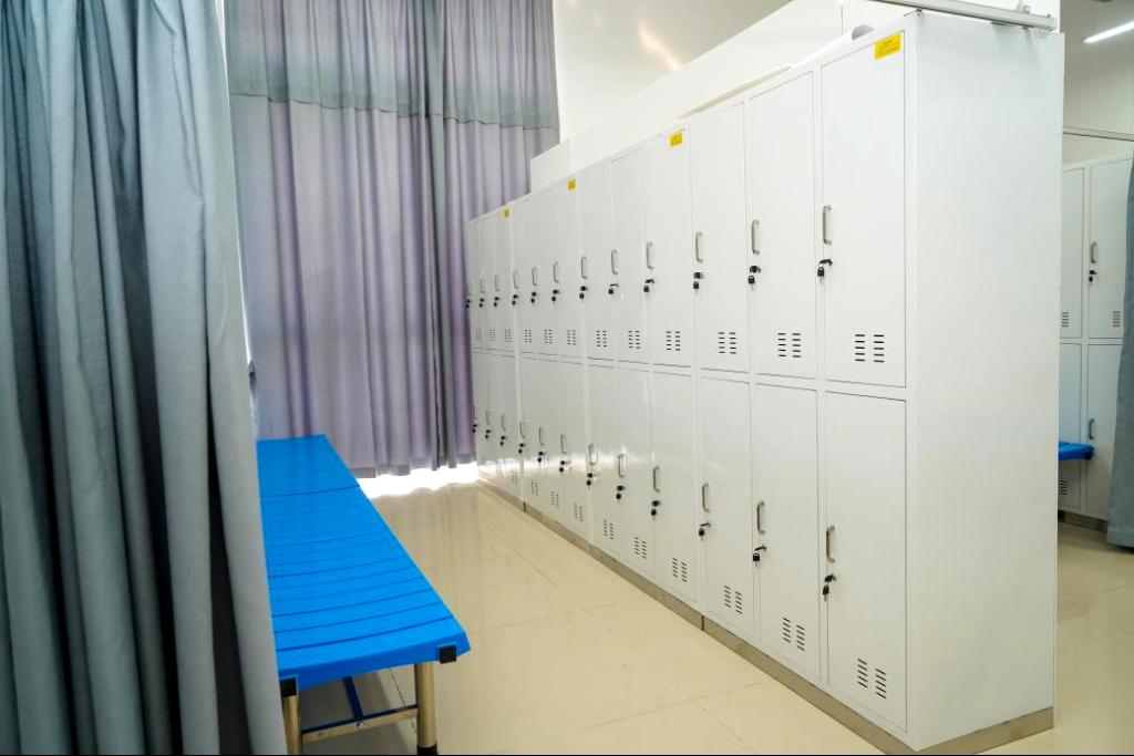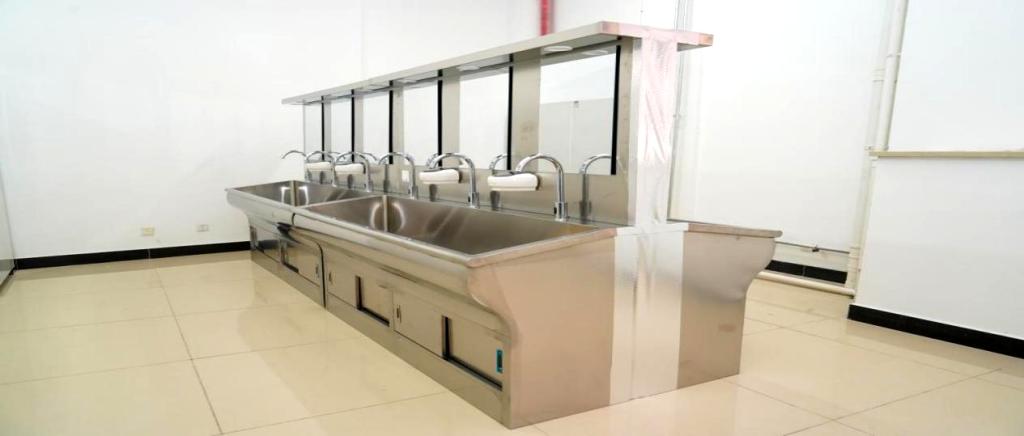 2.实训室布局:实训室按照医院外科手术室的实际布局模拟设计,不仅划分标准的外科手术台区,还配有术前刷手准备间,包括洗手池、泡手桶、更衣柜、鞋柜等,可确保员工在实训过程中熟悉真实的工作环境。