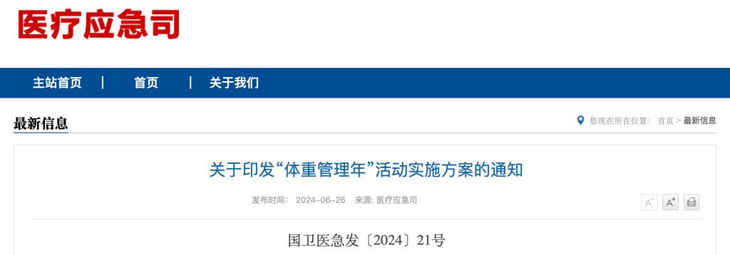 为贯彻党中央决策部署,落实《健康中国行动(2019—2030年)》有关工作要求,倡导和推进文明健康生活方式,提升全民体重管理意识和技能,预防和控制超重肥胖,切实推动慢性病防治关口前移,国家卫生健康委等16个部门联合制定了《“体重管理年”活动实施方案》。现印发给你们,请认真贯彻执行。